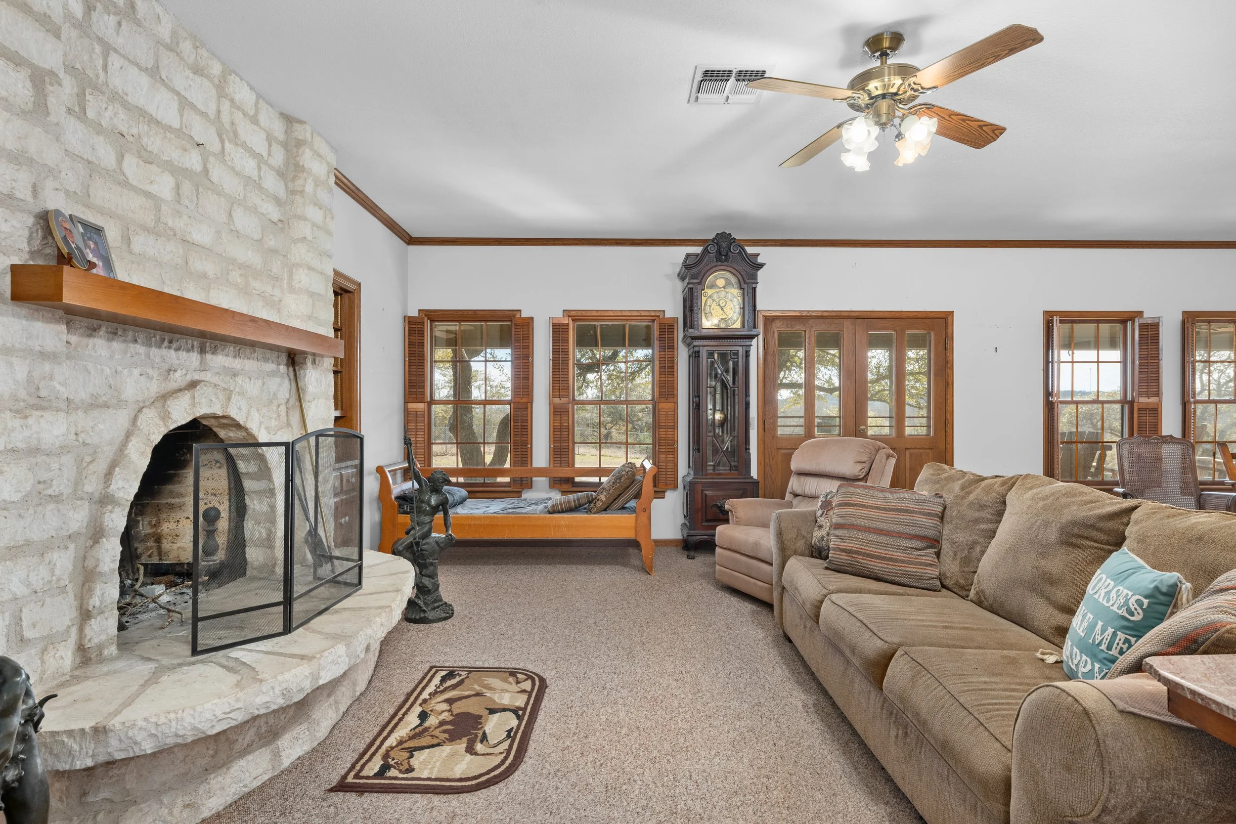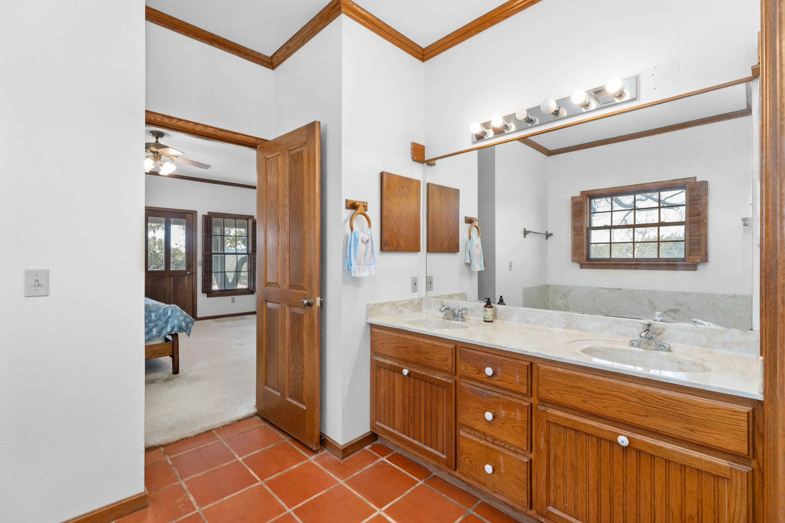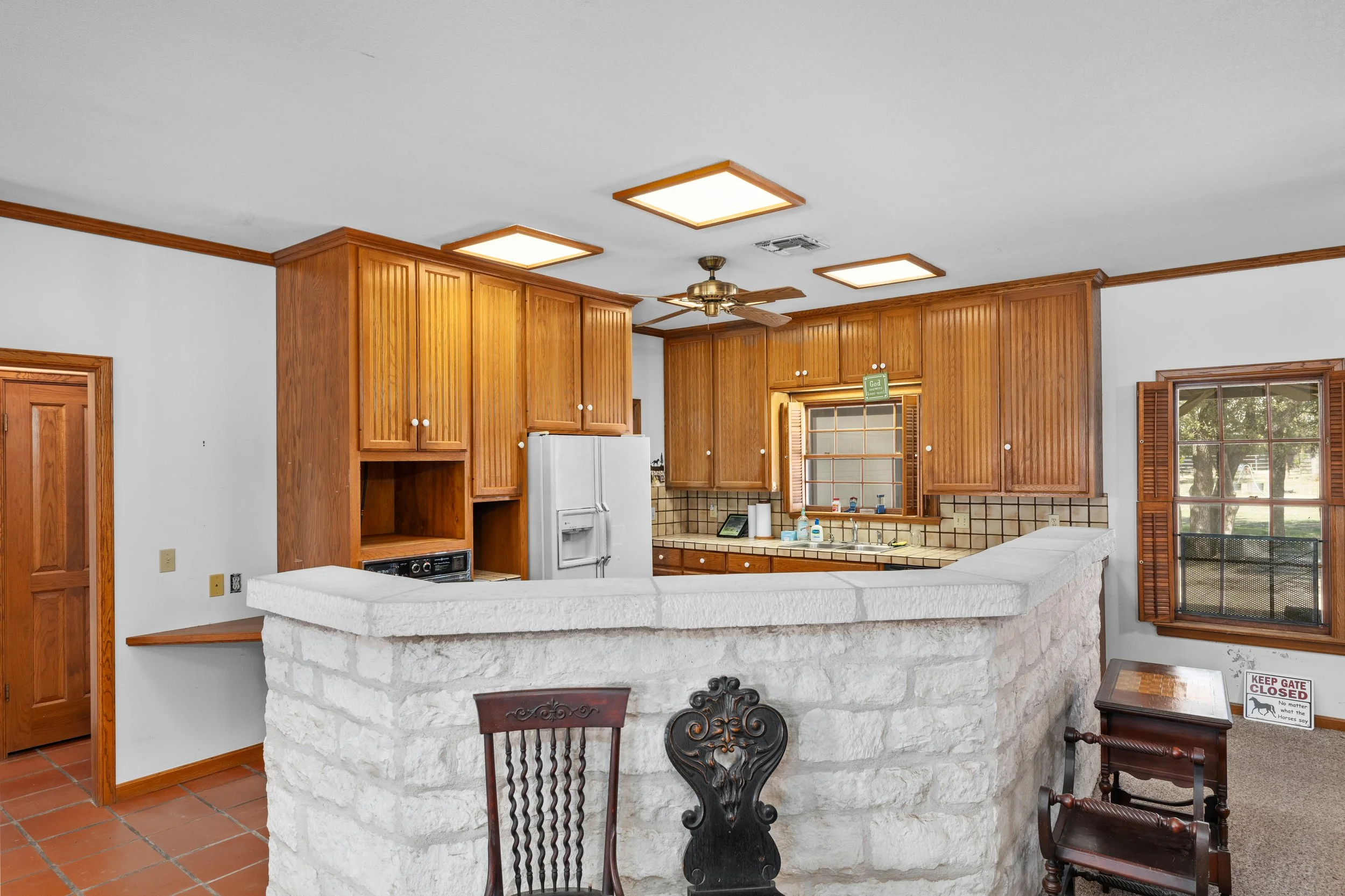 Located just off Highway 290 in Fredericksburg, Sage Ranch is a complete reimagining of a dated 1990s farmhouse—we took a majority of the home down to the studs and reimagined the layout to better serve the homeowner’s lifestyle. The result is a light-filled, highly personalized home with Saltillo tile floors, custom cabinetry, a spa-like master suite, and a kid-friendly attic retreat with a bedroom, a bunk room, climbing wall, and cedar deck.